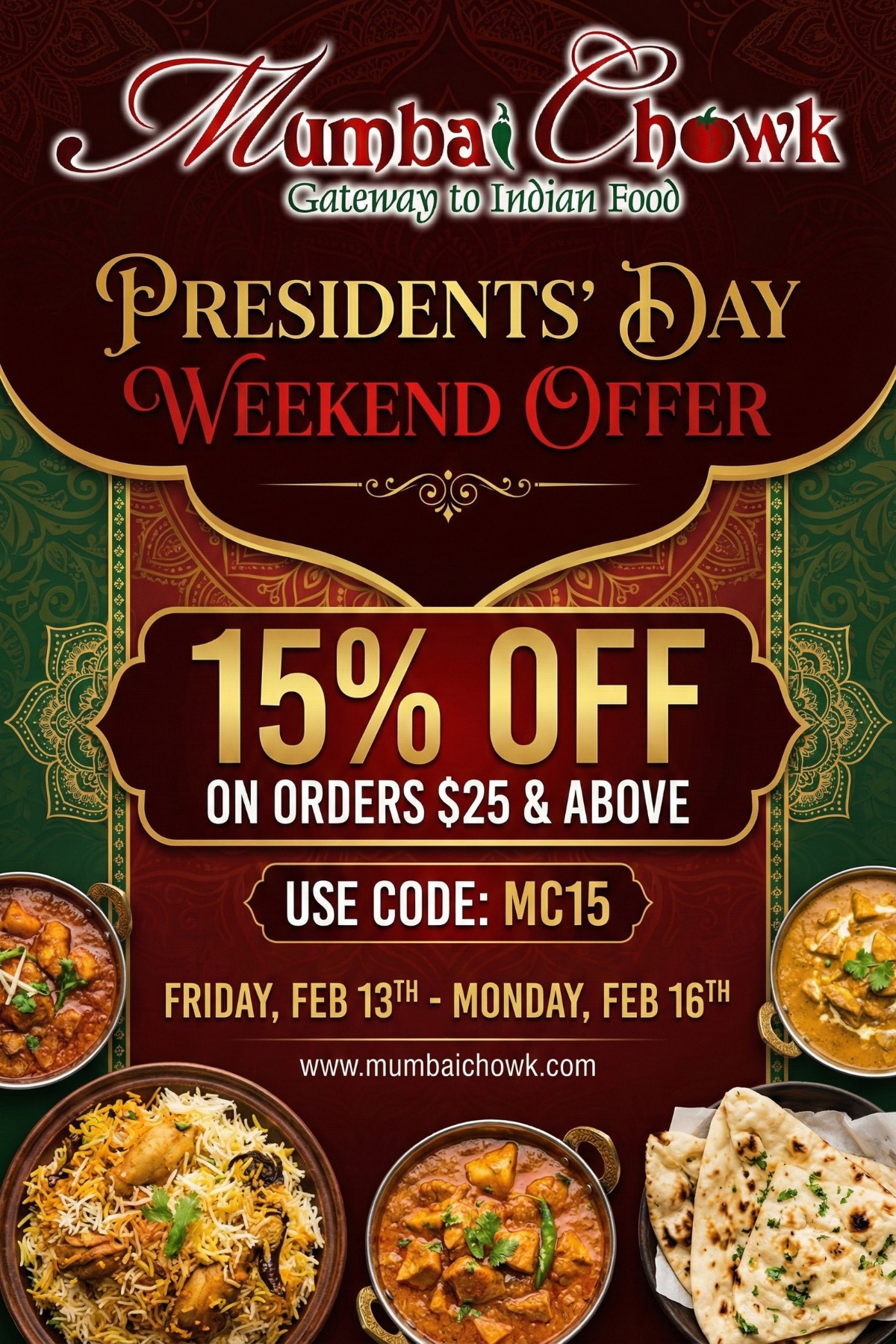 Mumbai Chowk is more than a restaurant it’s our family’s tribute to the city we love. Inspired by generations of recipes and the joy of shared meals, we bring you flavors that feel like home. From our kitchen to your table